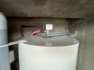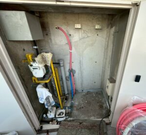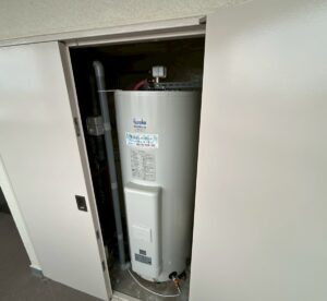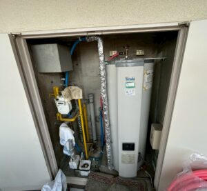 ブログ ー福岡市博多区 電気温水器入替工事ー 2026.04.02 博多区のマンションにて電気温水器の入替工事を行いました =========================================== 本体工事前 本体工事中 本体工事後 転倒防止 ↳上部固定 ↳下部固定 -工事完了-