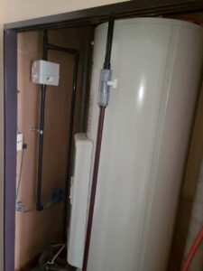 ブログ ー福岡県久留米市 電気温水器入替工事ー 2026.04.14 久留米市のマンションにて電気温水器の入替工事を行いました! ============================================== 本体工事前 本体撤去後 本体工事後 耐震補強 ↳上部固定 ↳下部固定 -工事完了-