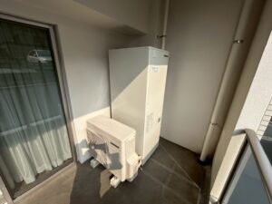 ブログ ー福岡県春日市 エコキュート入替工事ー 2026.02.27 春日市のマンションにてエコキュートの工事を行いました ========================================== 本体・ヒートポンプ工事 ⇩ ⇩ リモコン交換 台所/浴室 ⇩ ⇩ ⇩ ⇩ 本体上部固定 本体下部固定 **工事完了**